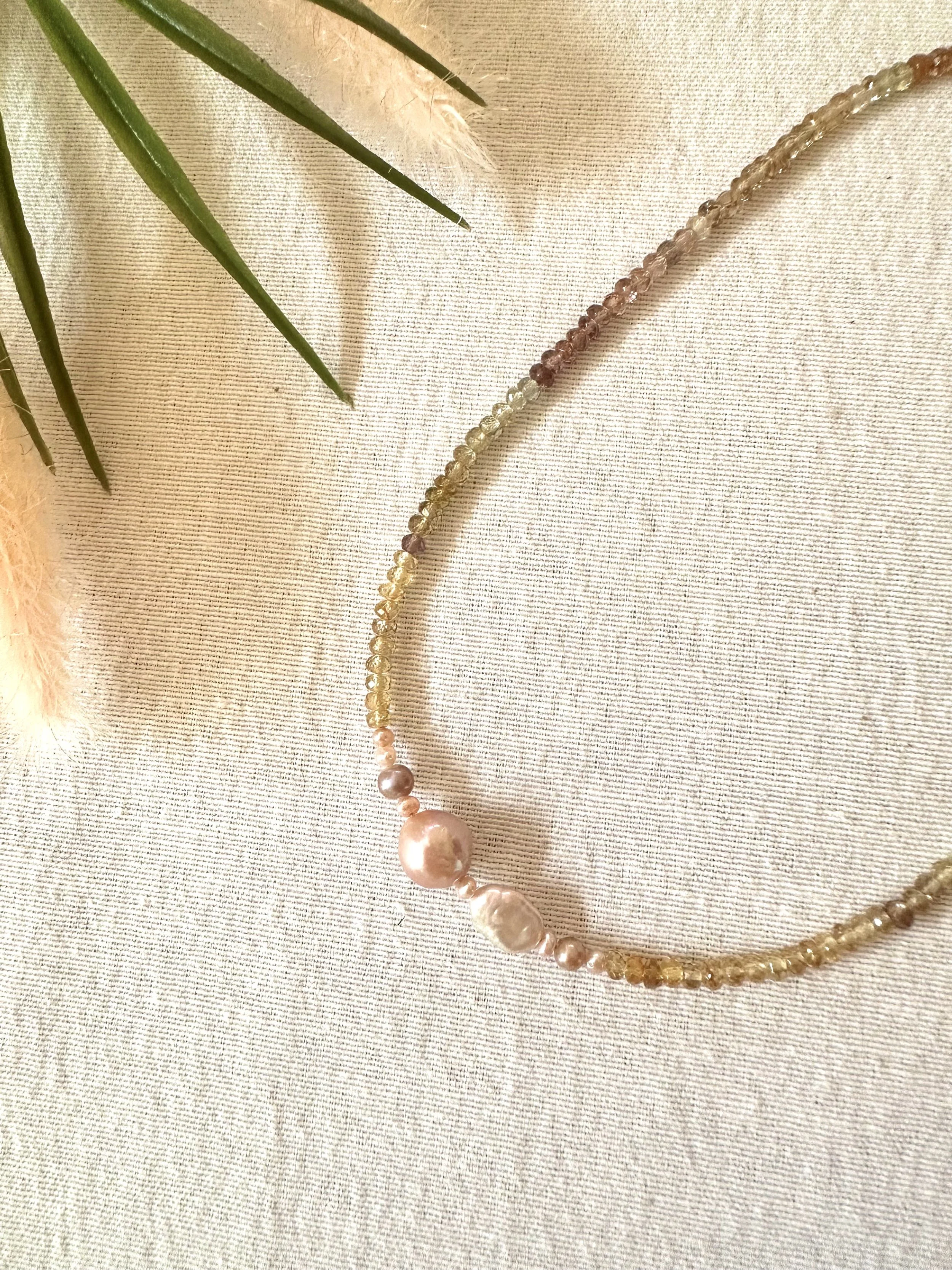 Where sun-kissed coastlines meet playful color, this necklace tells a story of joy, wanderlust, and the beauty of contrast. Smooth white shell rice beads with a subtle pearlescent glow form the base — classic and calming. Nestled among them are soft pink freshwater pearls and bright neon Japanese Miyuki beads, sparking with energy and movement.