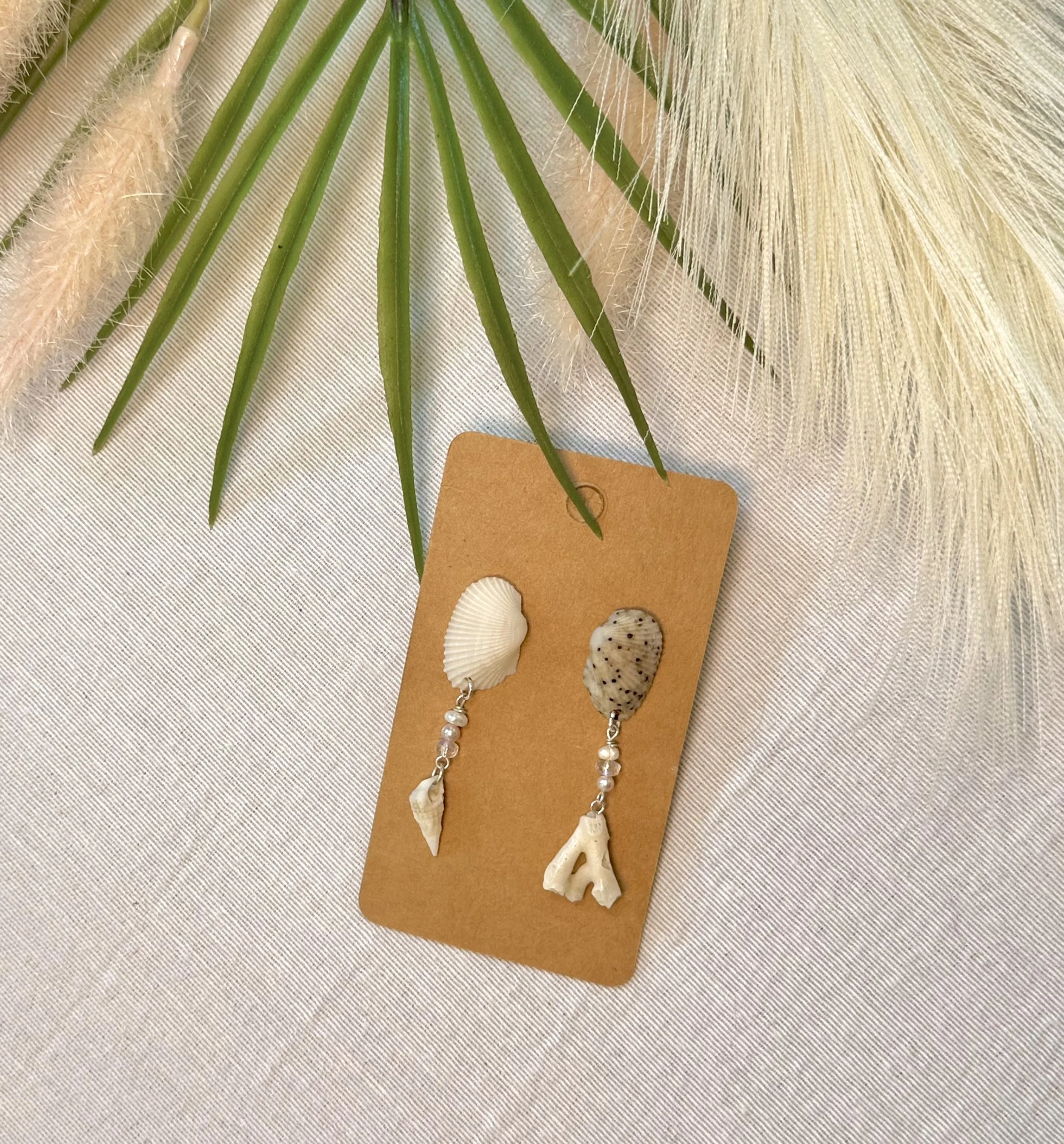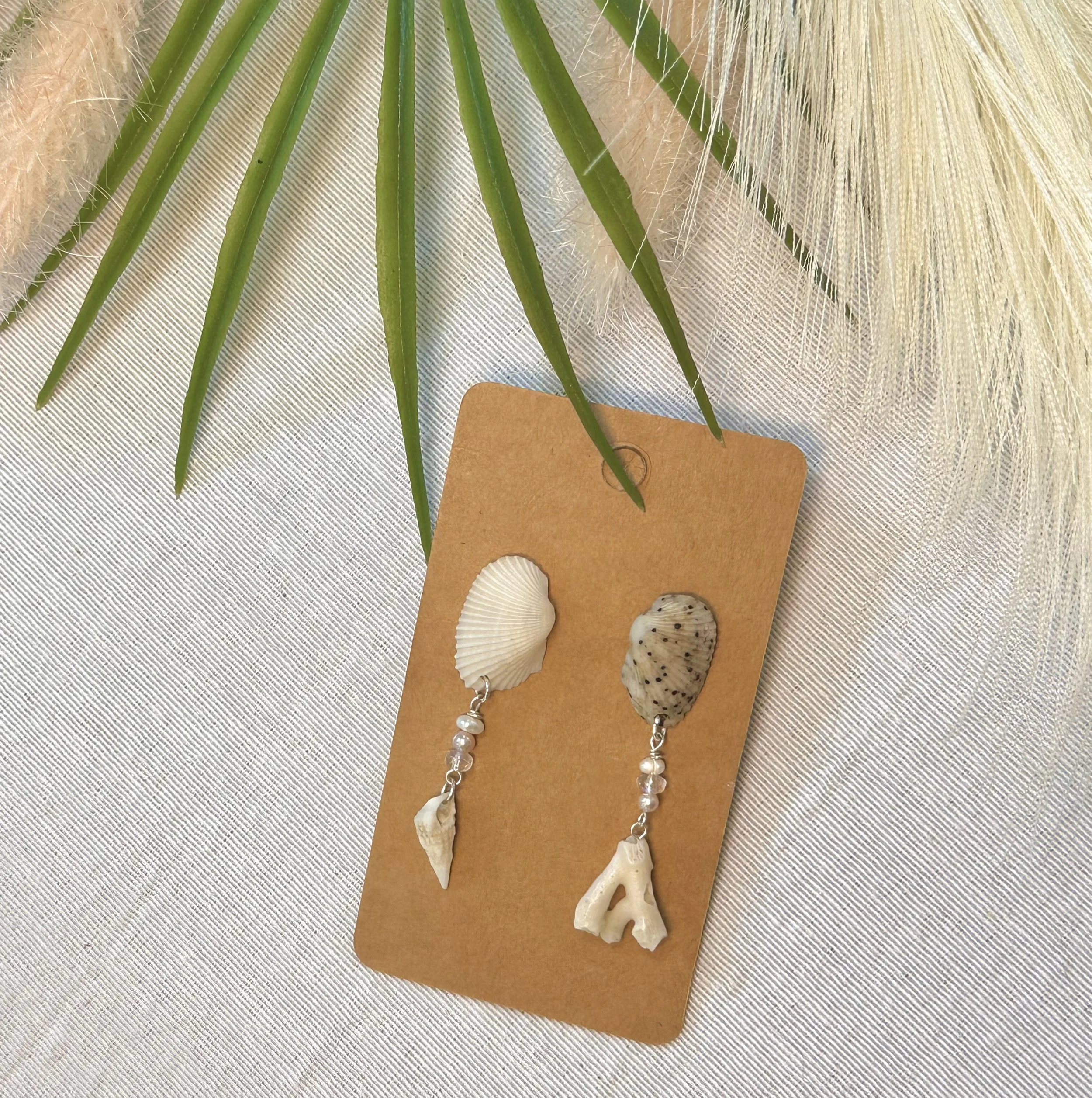 Channel the rhythm of the tides with these sterling silver hook earrings, adorned with a vibrant calico scallop shell and a sleek auger shell. This ocean-inspired pairing captures both the bold color and graceful movement of the sea. Hand-selected for their natural beauty, each shell is unique—making every earring one of a kind. Lightweight and breezy, they're a perfect coastal accent for any look.
