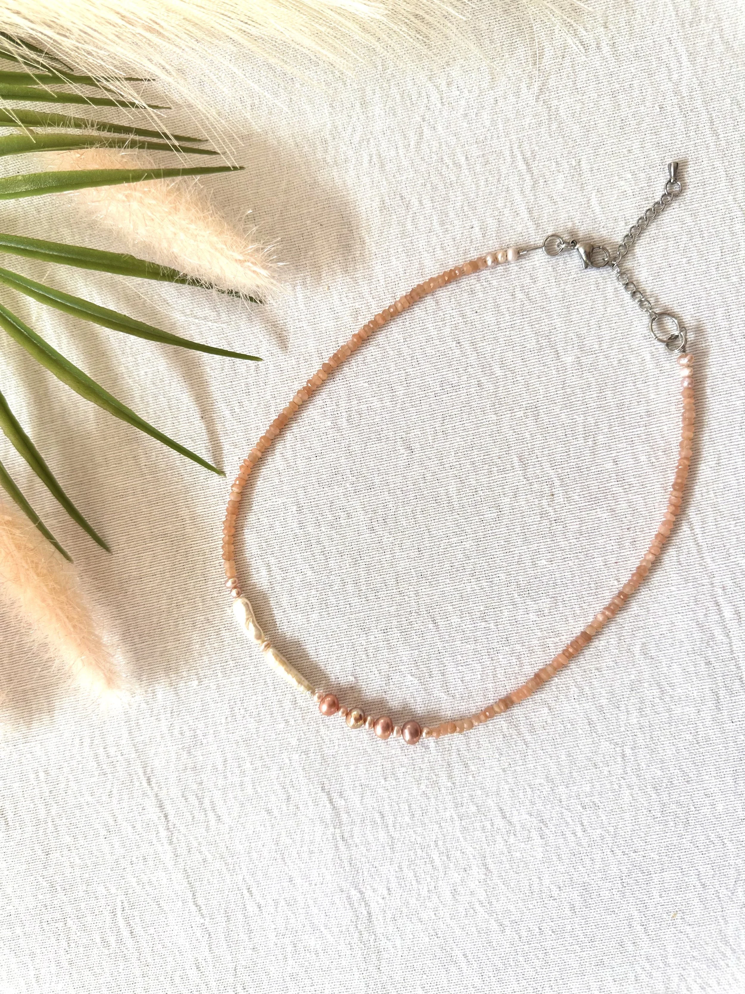 A warm, radiant dance of earth and light—this 16" handcrafted necklace features microfaceted natural zircon in a glowing ombré of golden yellows, smoky browns, and deep amber tones, reminiscent of sunlit forest floors and autumn twilight. Nestled among the gemstones are baroque freshwater pearls in soft blush and dusky lavender, tiny seed pearls, and a luminous champagne keshi pearl, each one adding texture, elegance, and an organic touch of mystery.