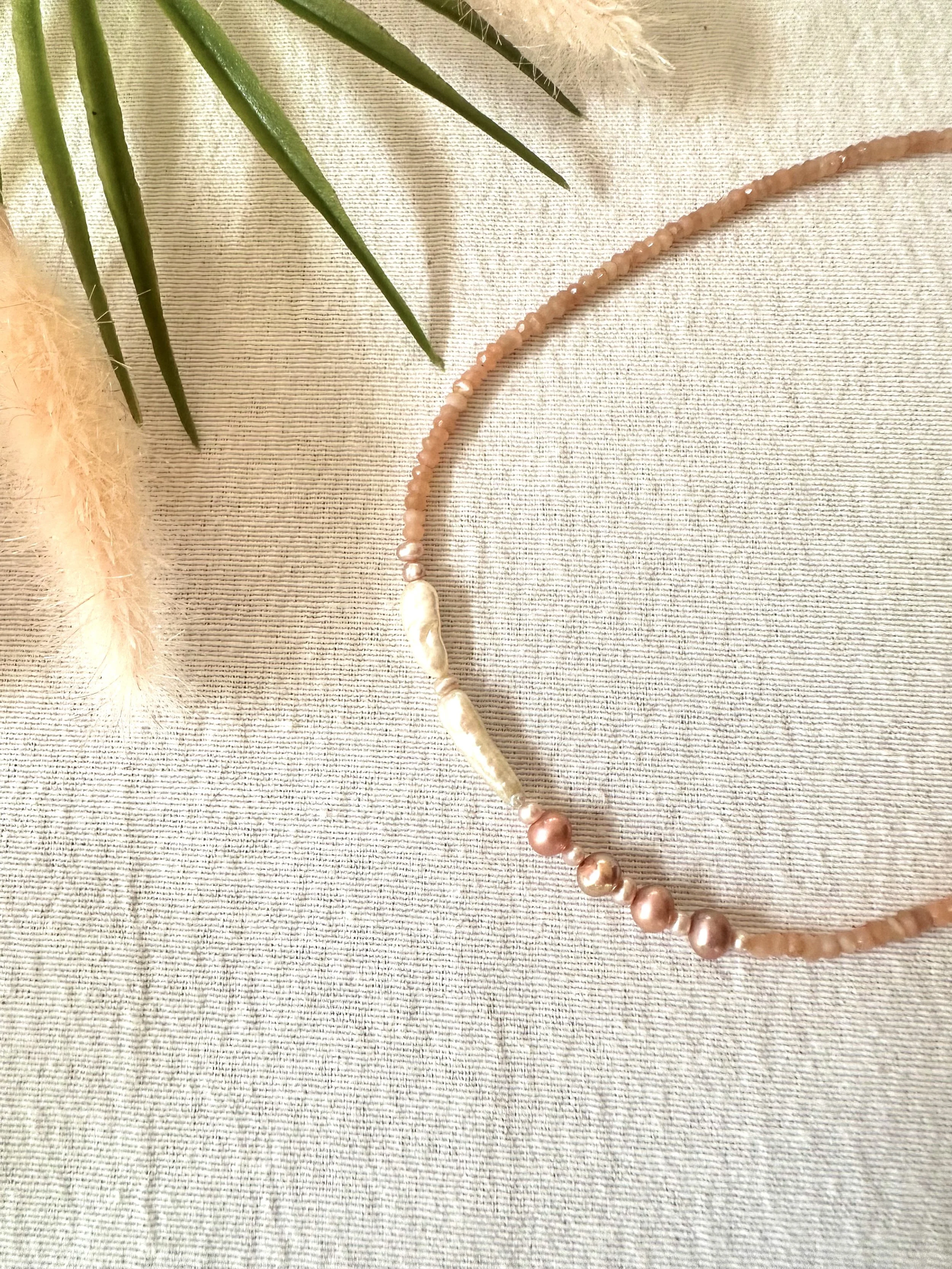 Blush & purple baroque freshwater pearls + champagne keshi pearl