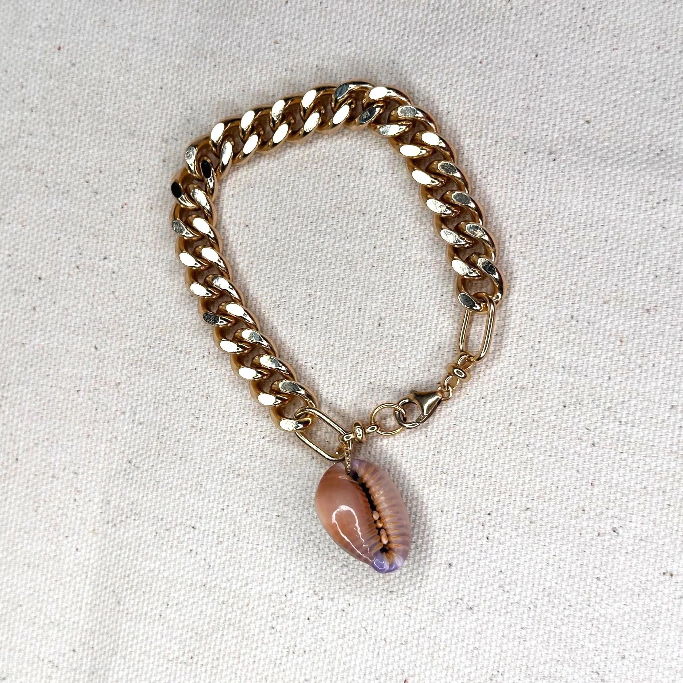 Chunky Gold Link Bracelet with Hawaiian Honey Cowrie