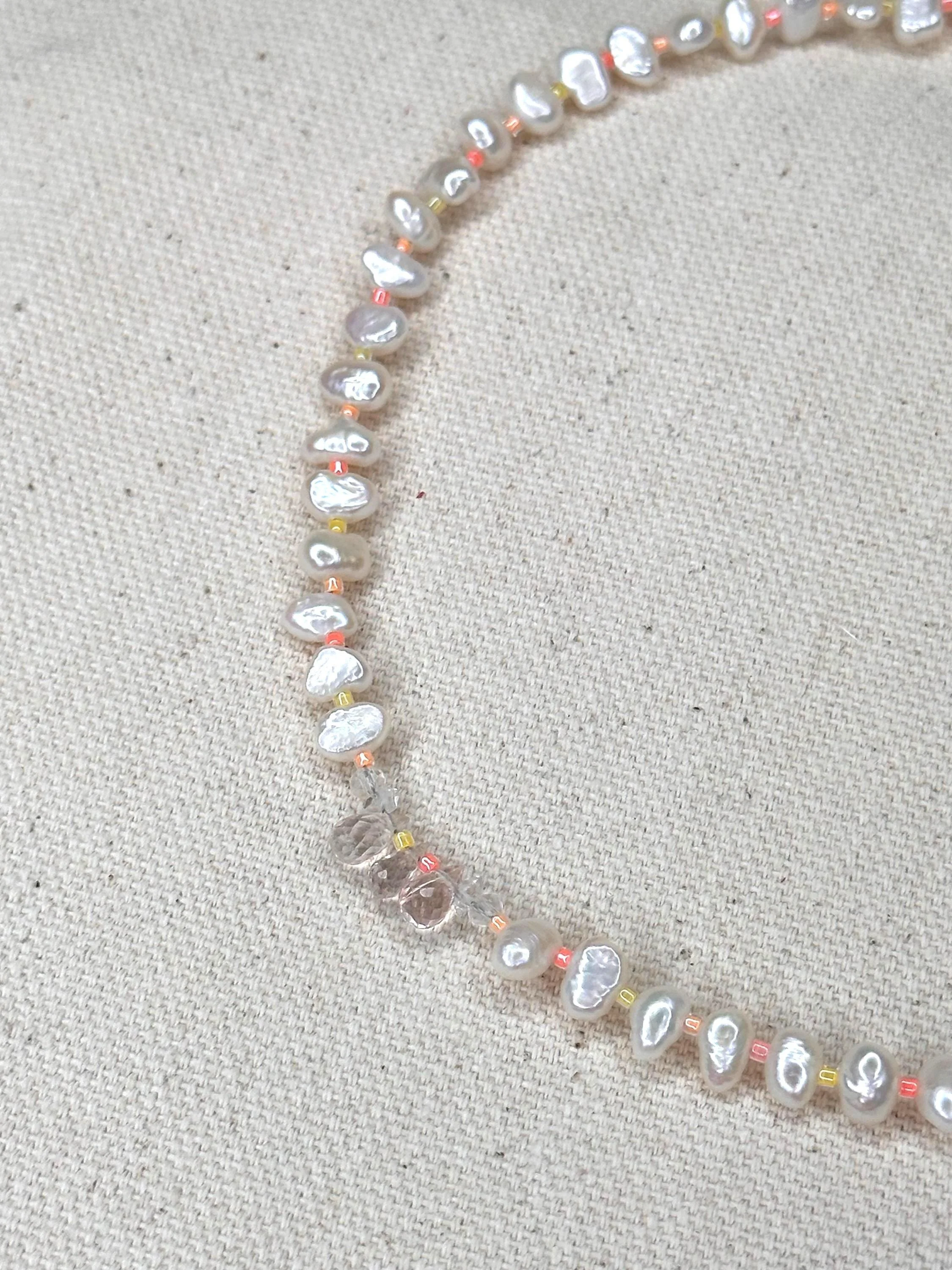 Materials: Iridescent white pearls, neon orange & yellow Japanese Miyuki beads