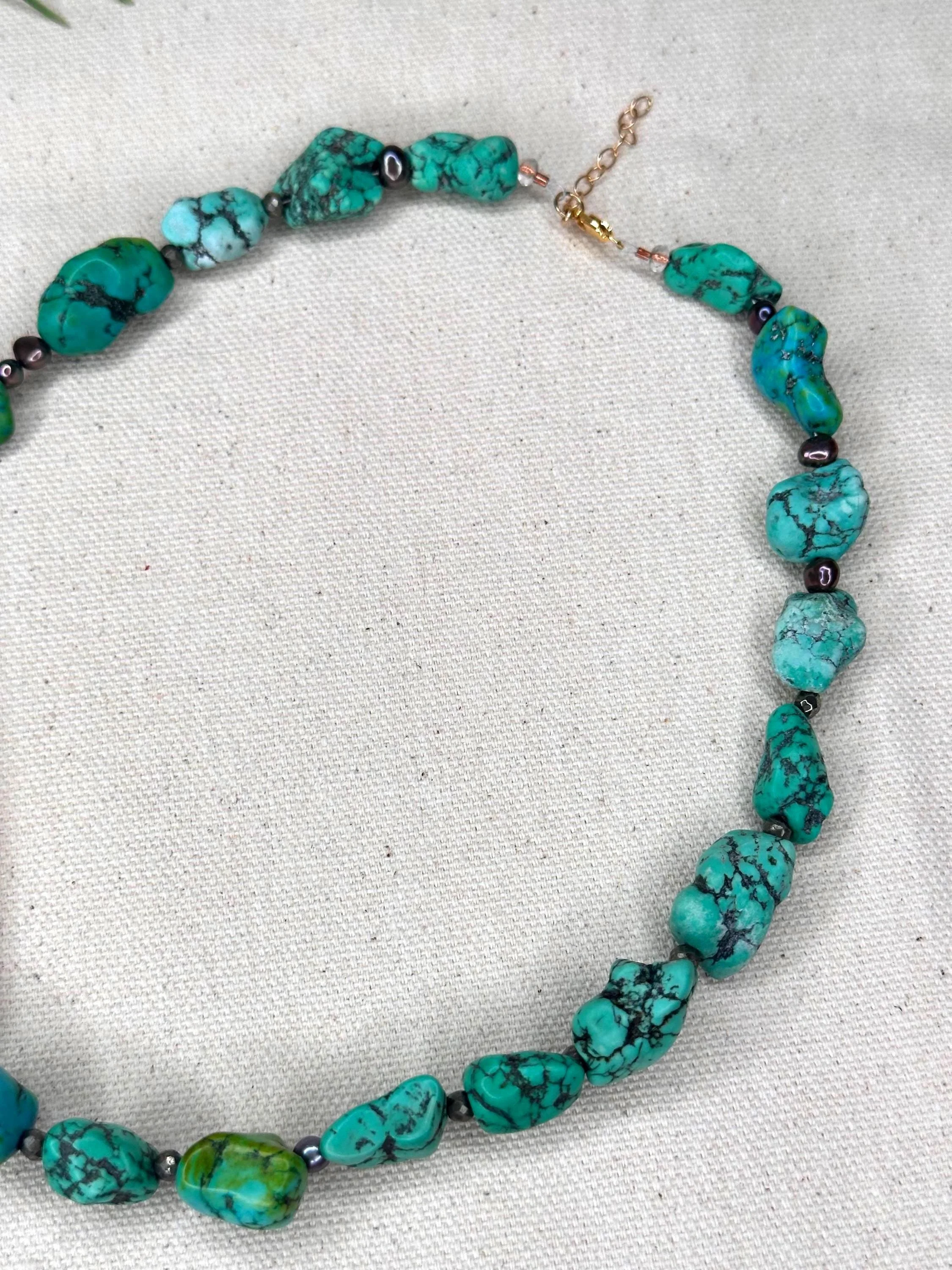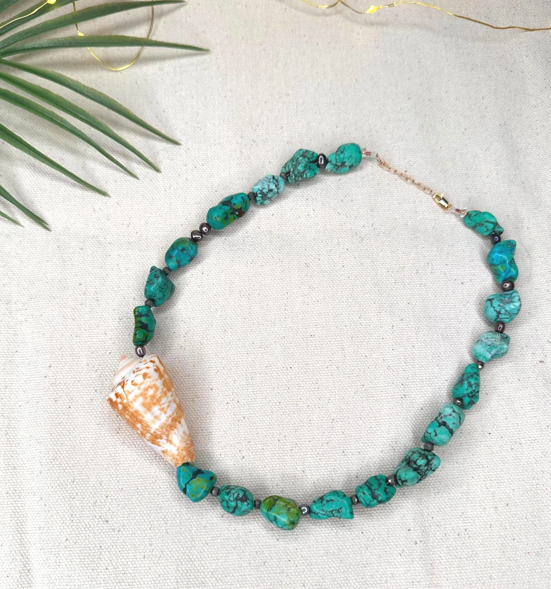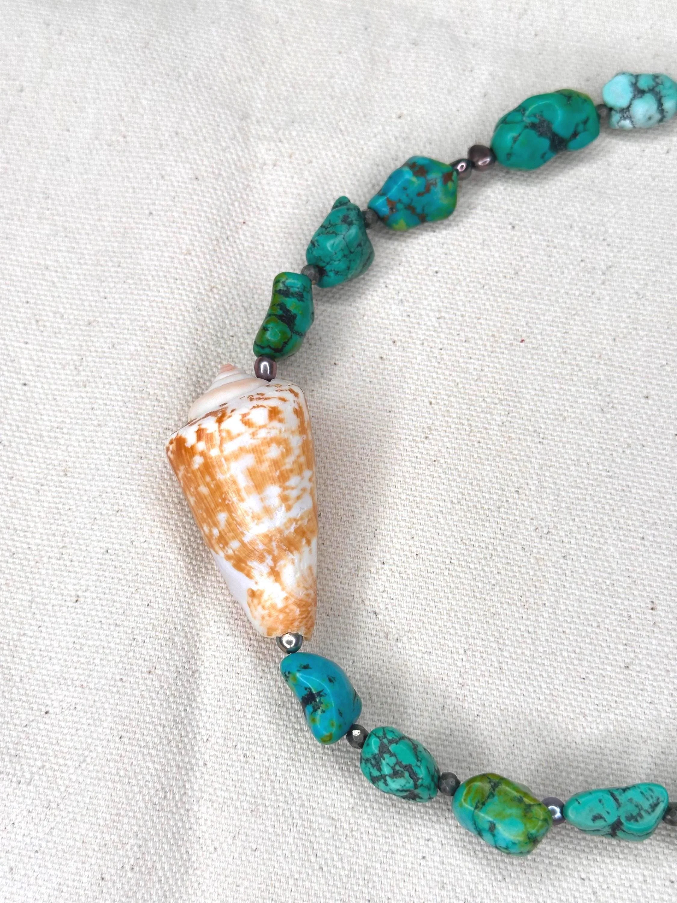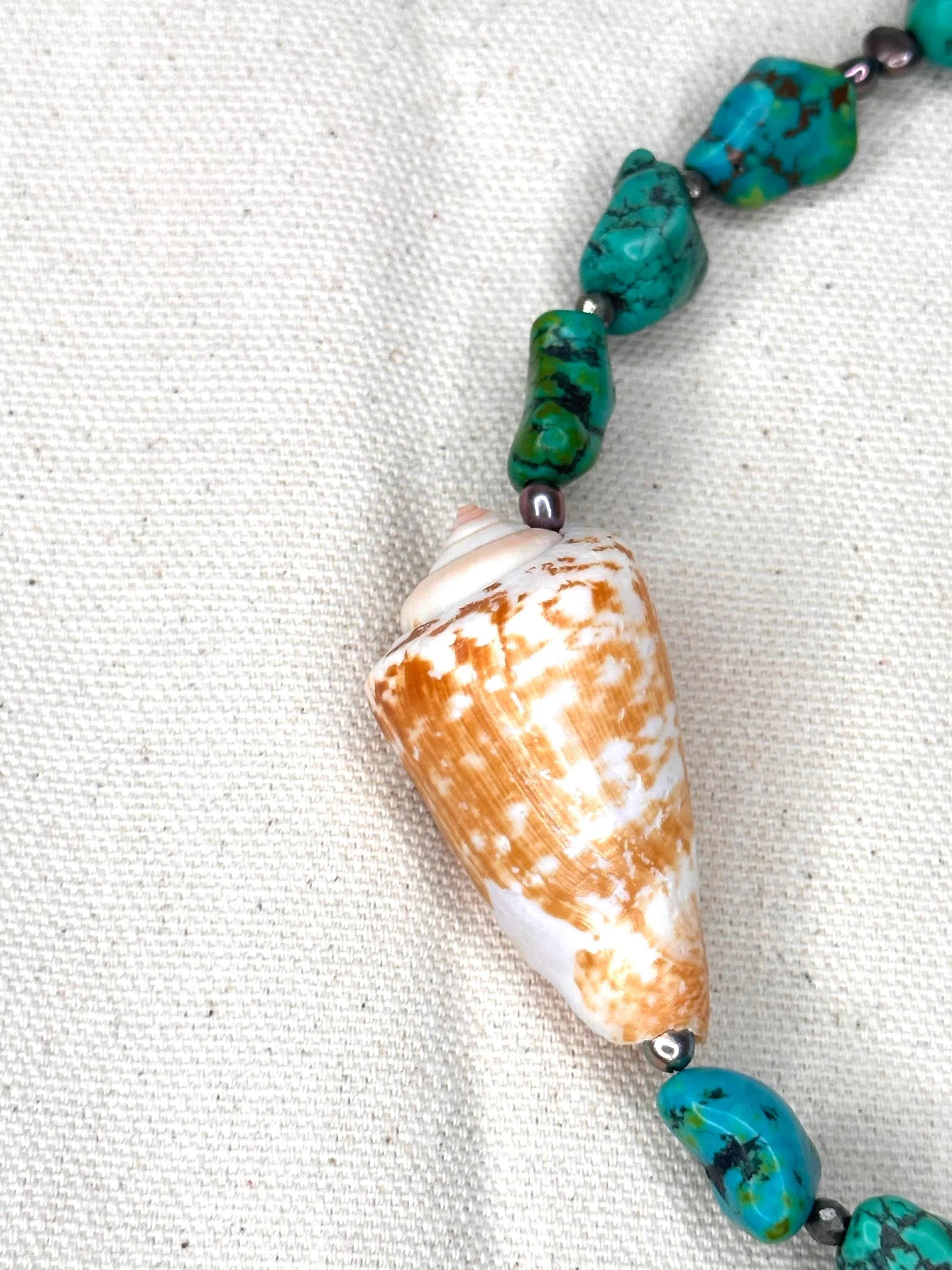 Stones & Shells: Peacock biwa pearls, black tourmaline, abalone beads